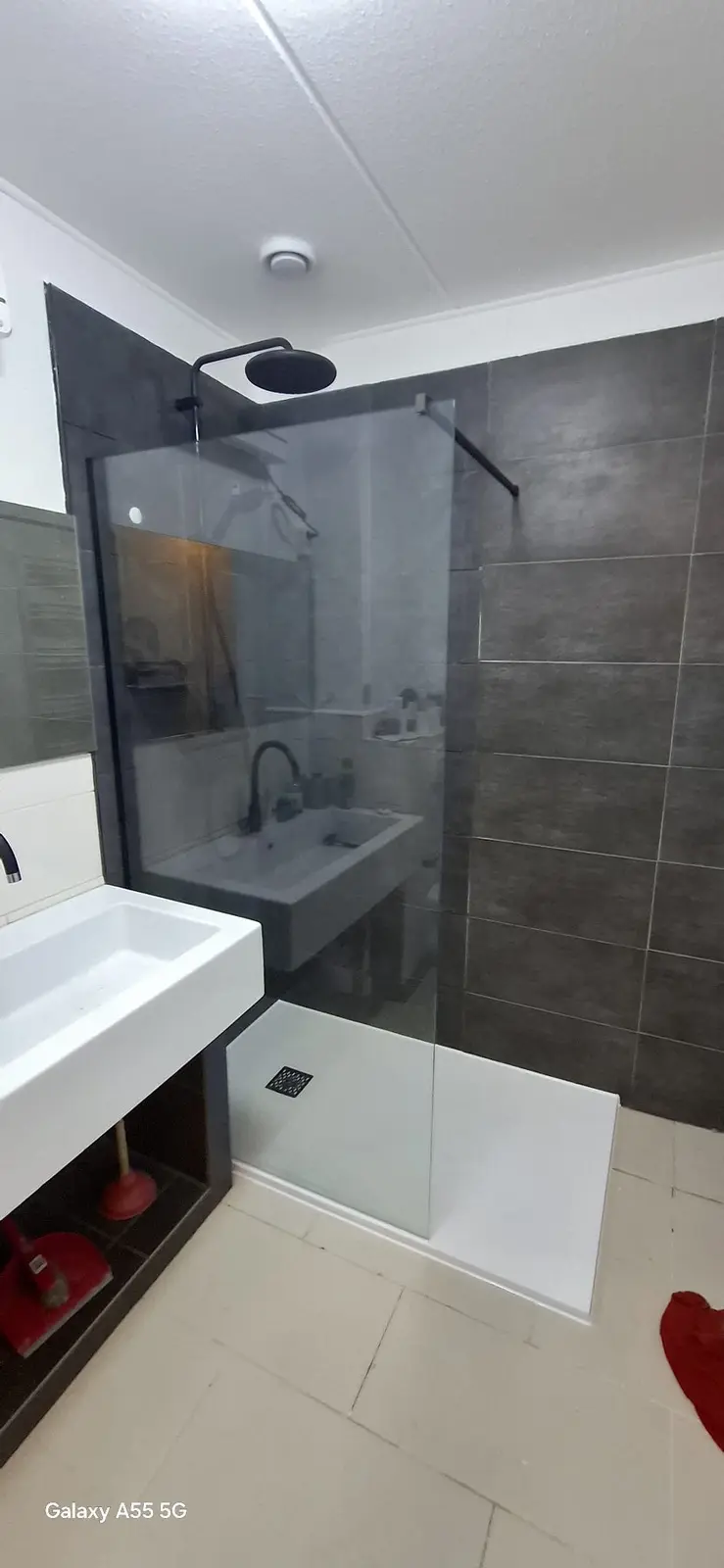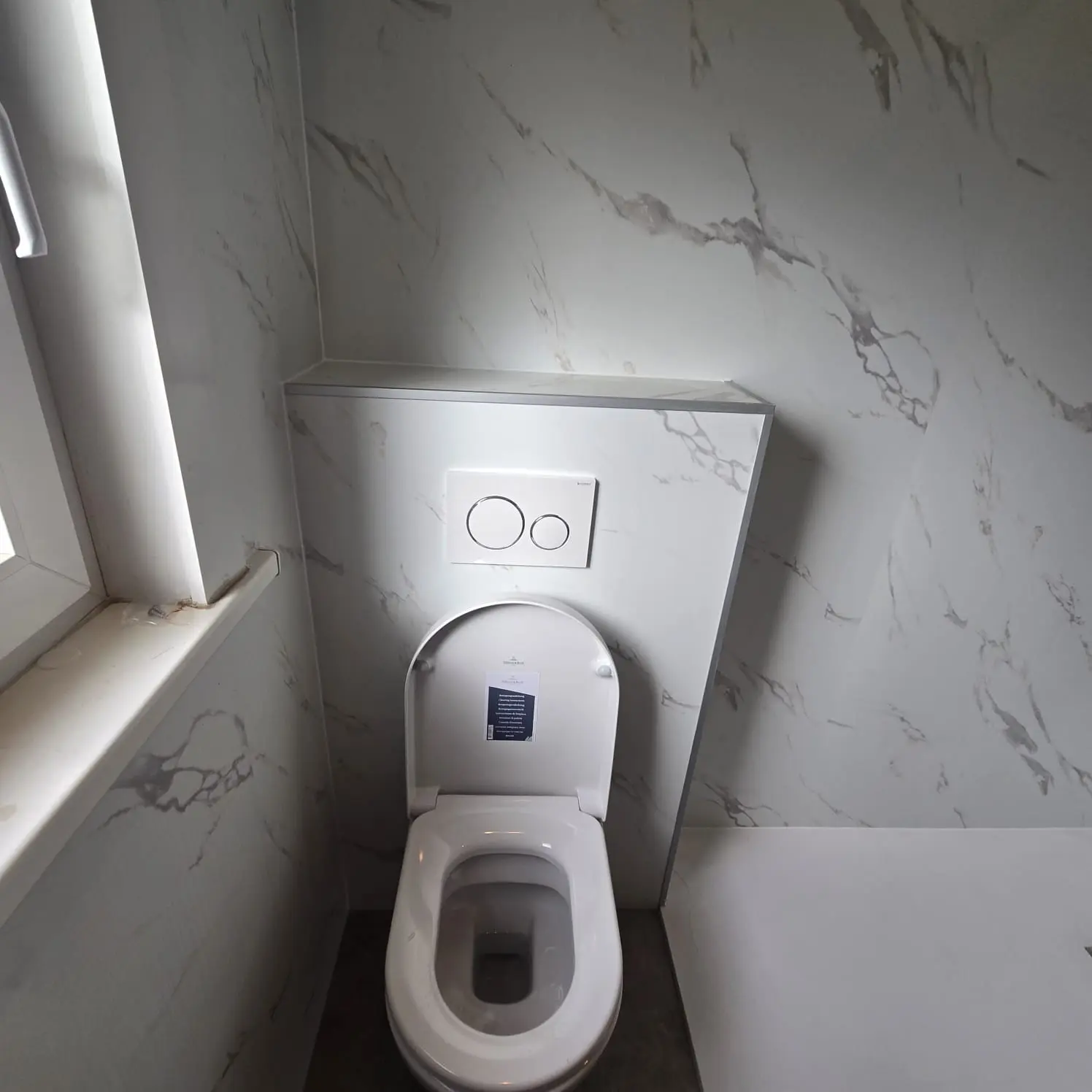 Op 18 oktober 2025 voltooiden we een stijlvolle badkamerrenovatie. De nieuwe drempelloze inloopdouche met antislipvloer biedt maximale veiligheid en comfort. Samen met het zwevende toilet en de luxe marmerlook wandbekleding creëert dit een moderne, rustgevende uitstraling. Een veilige en prachtige badkamer voor jarenlang zorgeloos genieten.